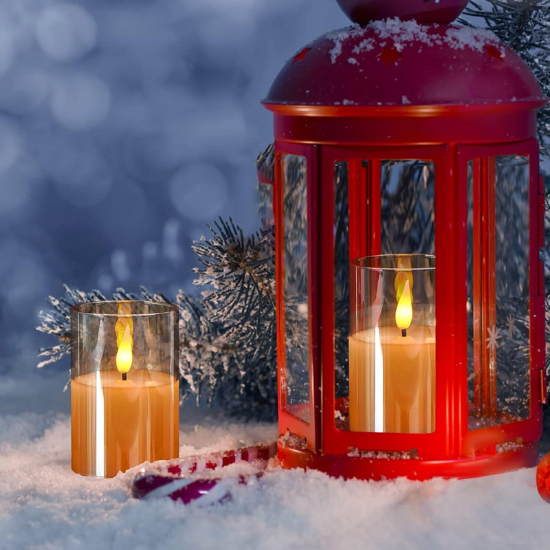 This 12-pack of clear glass flickering flameless candles features a 2-inch x 3-inch real wax design and a built-in battery-powered LED light. The design is simple and elegant. A remote control is included for easy operation. Four timer settings are supported to suit different occasions. Two lighting modes provide warm or romantic lighting effects, making them ideal for weddings and home décor.