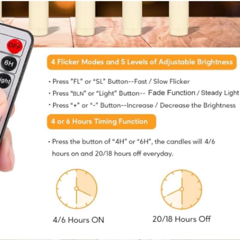 Glass Sparkling Flameless Candles – 6-pack with remote control, 2-inch x 3-inch real wax candles, battery powered, small LED electronic candles, suitable for wedding home décor, with timer and multiple lighting modes.