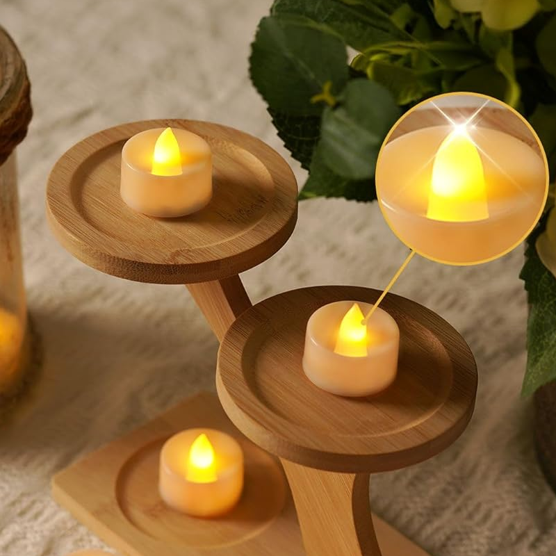 Timer LED Tea Candle Holder – 12-pack, warm yellow light, with timer, automatically cycles on for 6 hours and off for 18 hours, adding a cozy touch to your home.