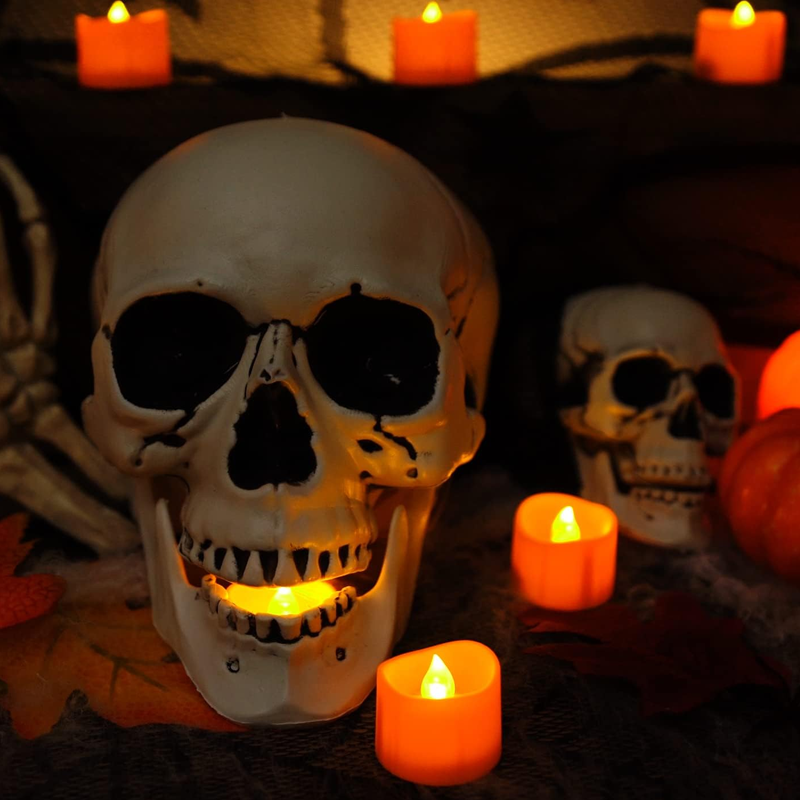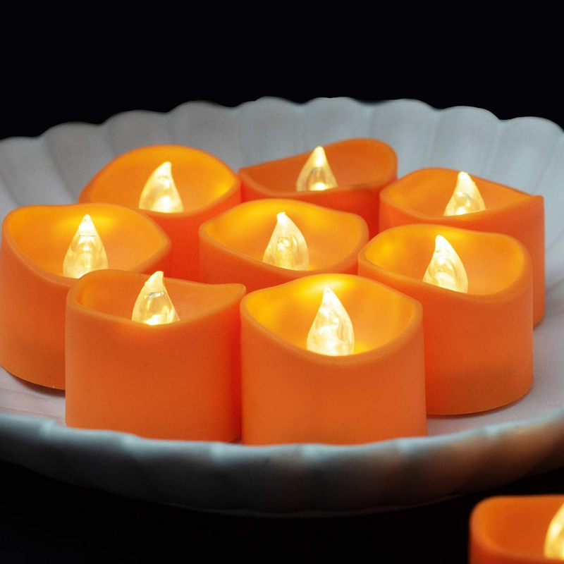 Halloween Pumpkin LED Tea Candle – 12 sticks, orange LED lights, small pumpkin shape, battery-powered, flameless and safe, 1.4 inches x 1.25 inches, adding vibrancy to Halloween parties.